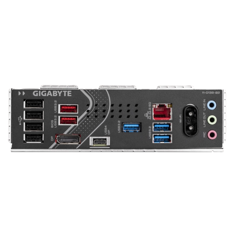 Arxa panel portları: USB4 Type-C (DP Alt-Mode), USB 3.2 Gen 2×2, HDMI 2.1, DP 2.1, səs çıxışları